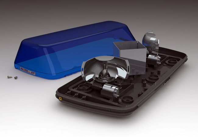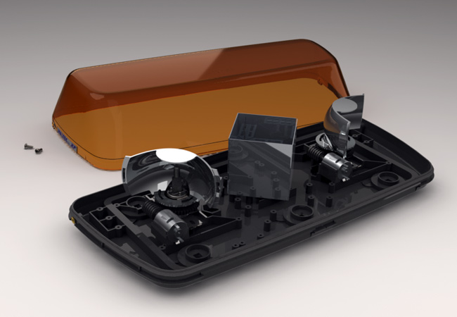 Minibar designed to take two low profile rotators, a previous project, and a large variety of other options including LEDs and strobes. Two screw and hook cover fixing and permanent or removable vehicle mounting with bolts or magnets.